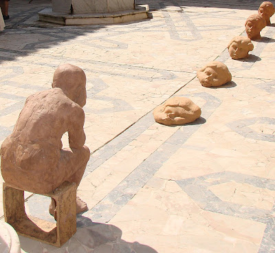 La imagen es de La visión del tiempo, una obra de Juan Gila Boraita (Zafra, 1964), profesor de escultura de la Escuela de Arte "Rodrigo Alemán" de Plasencia. Es un trabajo con arcillas refractarias y se ha exhibido en la exposición Arte Zafra.